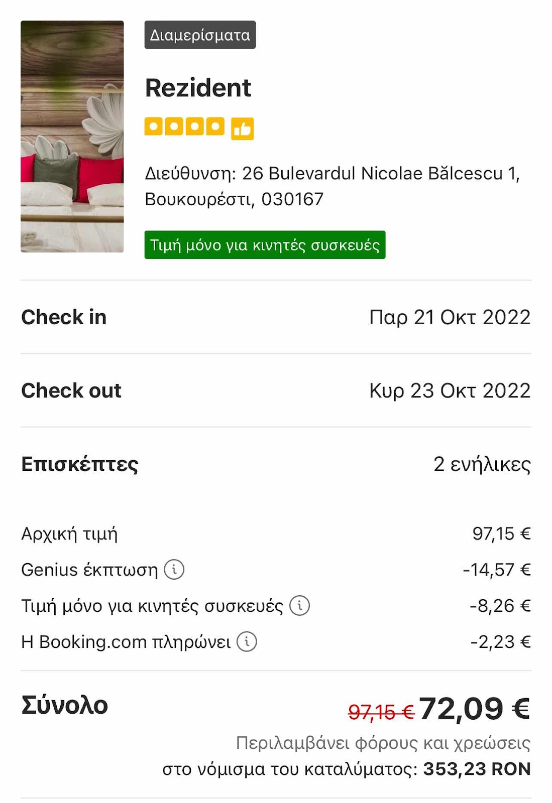 Τριήμερο ΠΣΚ τον Οκτώβριο στο Βουκουρέστι, με αναχώρηση πρωί, επιστροφή βράδυ και διαμονή σε κεντρικό ξενοδοχείο διαμερισμάτων με εξαιρετικές κριτικές. Τελική τιμή 80€ για αεροπορικά και διαμονή με αναχώρηση από Θεσσαλονίκη.